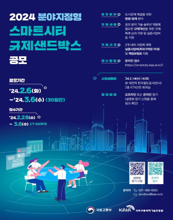올해는 최근 증가하고 있는 각종 안전사고와 자연재해로부터 국민의 안전을 지킬 수 있고, 규제해소 수요도 높은 방범·방재 분야의 혁신 기술·서비스를 대상으로 2월 6일부터 3월 6일까지 공모를 진행한다.