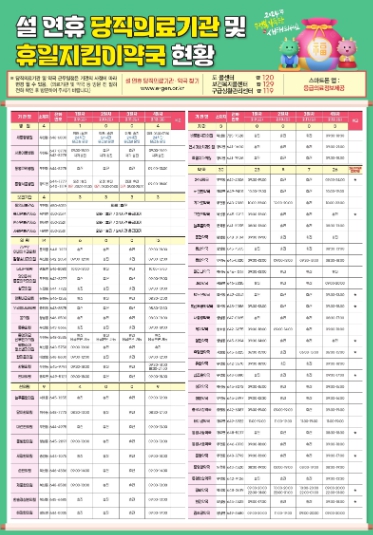 시민들이 연휴 기간 의료기관과 약국 이용 불편을 겪지 않도록 총 64개소(의료기관 34개소, 휴일지킴이약국 30개소)를 일정별로 지정·운영하고, 응급의료기관은 24시간 응급환자 비상진료체계를 유지하며 보건소에서는 응급진료대책 상황실을 운영해 병·의원 및 약국 운영 상황을 점검한다.