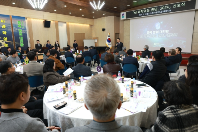 충북도는 2024년은 AI 과학영농을 통해 미래 첨단농업으로 대전환되는 원년임을 대・내외에 선포했으며, 이를 위해 5대 분야에 127개 사업, 1조 2,401억원을 투입하여 본격적으로 추진해 나갈 예정이다.