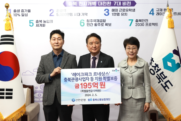 특히 충북 레이크파크 르네상스와 연계하여 관광사업의 활력 제고를 위해 도내 관광사업자에게 보증 한도를 1억원으로 상향하고 보증수수료는 연 0.7%로 낮추어 금융비용 부담을 한층 완화할 예정이다.