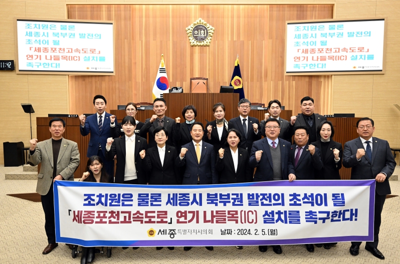 한편, 세종시의회는 ‘'세종포천고속도로' 연기 나들목(IC) 설치 촉구 결의문’을 국회의장과 국무총리, 더불어민주당 대표, 국민의힘 대표, 행정안전부장관, 국토교통부장관, 행정중심복합도시건설청장, 한국도로공사 사장 등에 이송할 예정이다.