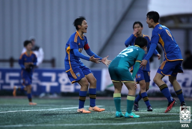 ![]() 울산HD U15 선수들이 춘계중등대회 매화그룹 우승 확정 후 기뻐하고 있다. |