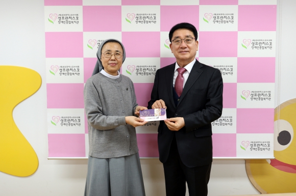 ![]() 문헌일 구청장이 성프란치스꼬 장애인종합복지관을 찾아 위문금을 전달했다. |