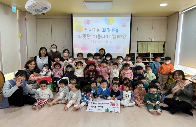 구립신사1 어린이집은 지난달 29일부터 31일까지 3일간 원아들과 선생님들이 따뜻한 겨울나기 성금 모금 기간을 가졌으며 모인 성금을 기탁했다.