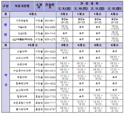 ![]() 설 당직의료기관 및 휴일지킴이 약국 현황 |
