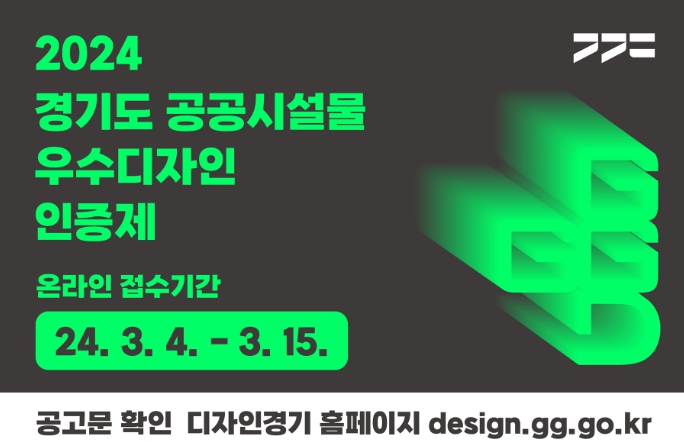 신청은 3월 4일부터 3월 15일까지 디자인경기 누리집을 통해 받는다. 인증제 신청 대상은 공공시설물 디자인을 직접 개발하고 생산·유통·사후관리(A/S) 등이 가능한 국내업체(개인 및 법인)와 현장 설치가 완료된 자체 표준시설물 디자인을 보유한 도내 지자체 및 산하기관이다.