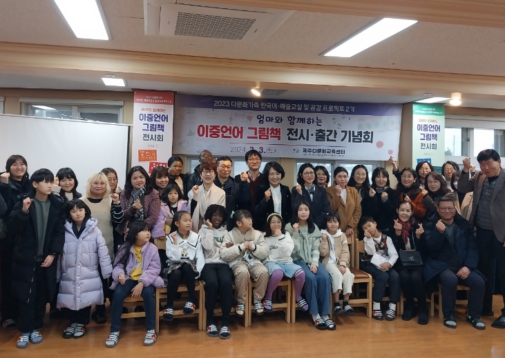 제주다문화교육센터 도서관에서 오후 2시부터 두 시간 동안 진행됐던 『엄마와 함께하는 이중언어 그림책 전시・출간 기념회』에서는 ‘2023 다문화가족 한국어·예술교실 및 공감프로젝트’에 대한 사업 설명과 함께 프로젝트 기간 동안의 활동사진 및 인터뷰 영상 등이 공개되어 이중언어 그림책 제작 과정 및 가족들의 변화된 모습에 대한 내용을 알 수 있었다.