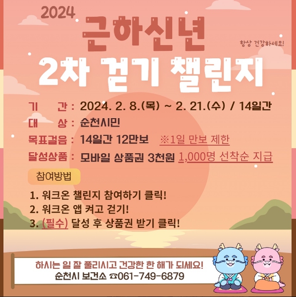 ![]() 순천시, 설날연휴 건강을 위해 가족과 함께 걸어요. |