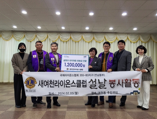 한편 새여천라이온스클럽은 2020년 여천동과 민·관협력사업 추진 업무협약을 체결하고 행복꾸러미 지원, 누룽지 나눔, 장학금 전달 등 매년 지역사회의 소외 계층을 위해 다양한 사회공헌 활동을 펼쳐오고 있다.