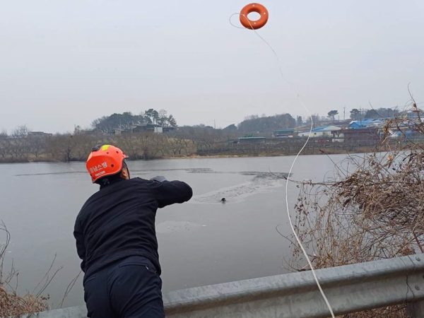 이에 성환119안전센터는 구명 부환을 활용하여 강아지를 인근까지 탈출시킨 후 뜰채를 이용하여 구조했다고 전했다.