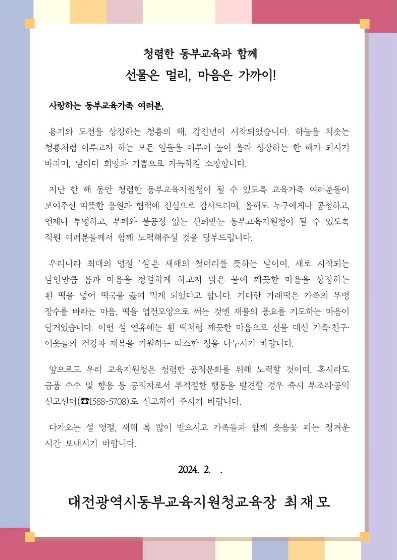 ![]() 2024년 설 명절 교육장 청렴서한문(대전동부교육지원청) |