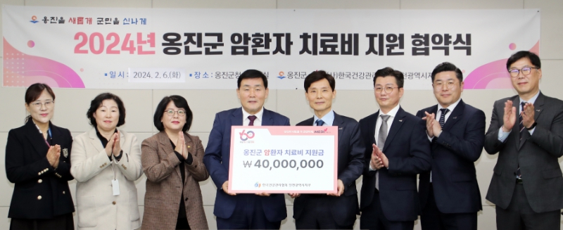 이날 협약으로 한국건강관리협회는 사회공헌기금 4천만 원을 암 투병으로 고통 받는 옹진군 취약계층에게 지원할 예정이다.