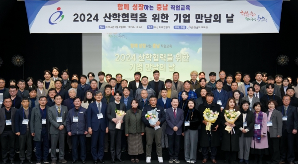 ![]() 6일(화) 아산 디바인밸리에서 개최된 ‘산학협력을 위산 기업 만남의 날’에서 김지철 교육감과 직업교육 기업체 관계자들이 기념사진을 촬영하고 있다. |