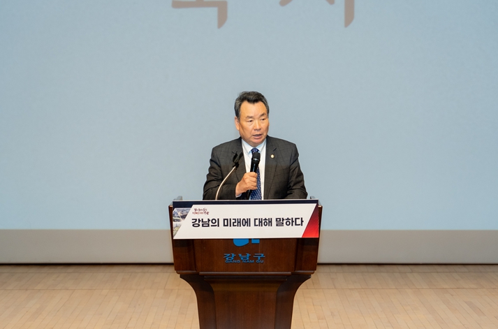 ![]() 6일 강남구민 토론회에서 축사를 하고 있는 김형대 의장 |