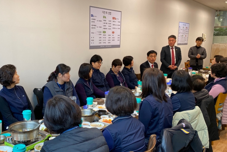 오찬 후 이어진 간담회에서 청사 환경 관리 직원들은 ▲힐링과 사기 충전을 위한 워크숍 개최 ▲본인이 원하는 시기에 휴가를 쓸 수 있도록 직원 충원 ▲편의시설인 샤워실의 조속한 완공 등을 제안했다.