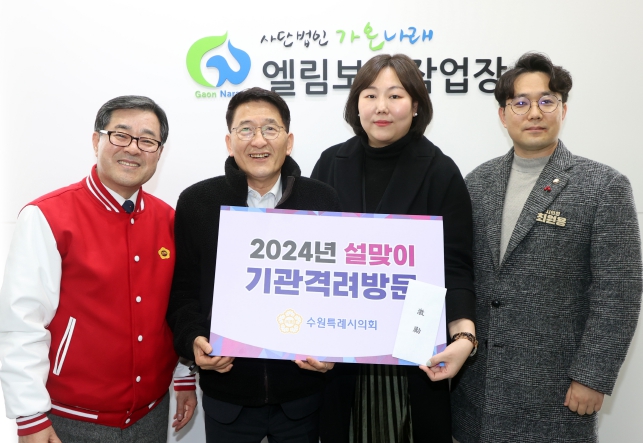 김 의장은 “설 명절에도 변함없이 소외계층 복지와 지역사회 안전을 위해 열심히 일하시는 분들에게 감사드린다”고 말하며, “힘들고 어려운 시기, 함께 살아가는 지역공동체를 만들기 위해 수원특례시의회가 더욱 노력하겠다”고 강조했다.