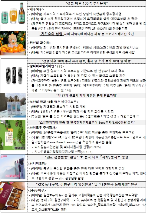 아울러 특허청의 지식재산(IP) 창출 종합 지원사업과 문화체육관광부의 지역문화 전문인력 사업, 문화도시와도 연계되어 각각 지식재산(IP) 브랜딩 전략과 지역의 문화콘텐츠와 연관된 창업활동도 함께 지원한다.