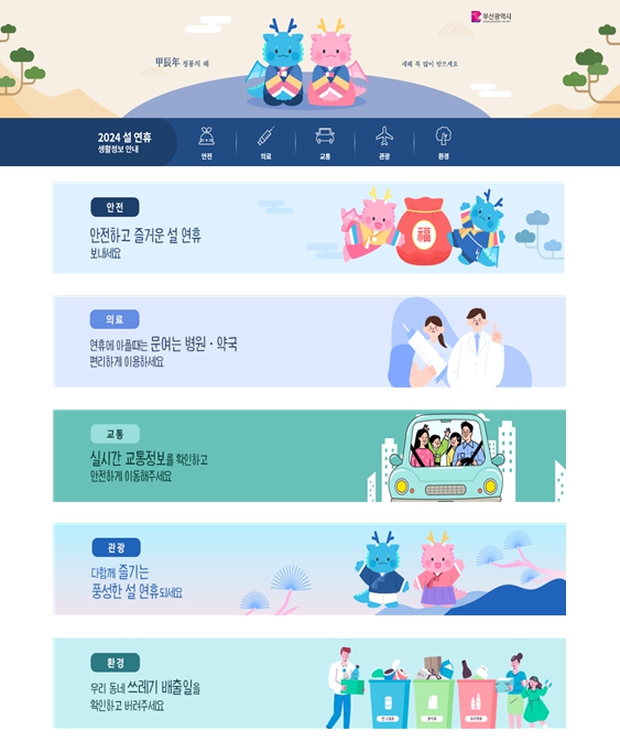 ![]() 부산시, 설 연휴 생활정보 안내 사이트 운영 |
