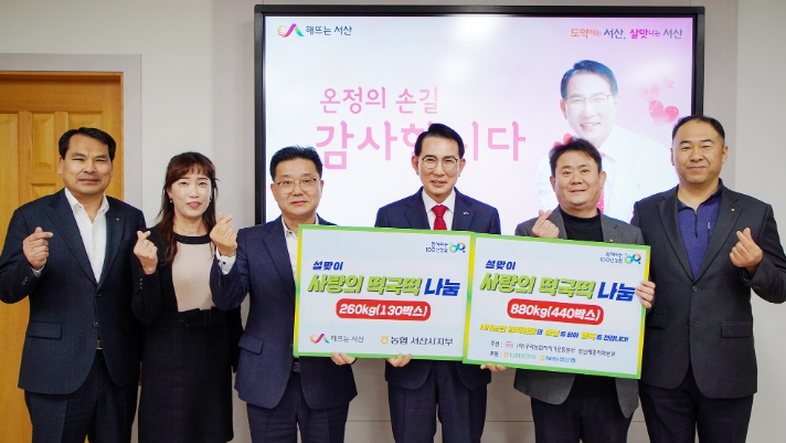 우리농업지키기운동본부(440박스)와 농협 서산시지부(130박스)에서 함께 준비한 떡국 떡은 서산시 지역 주간보호센터 17개소를 통해 센터를 이용하는 장기요양등급 판정 대상 또는 노인성 질환을 가진 어르신들께 전달된다.