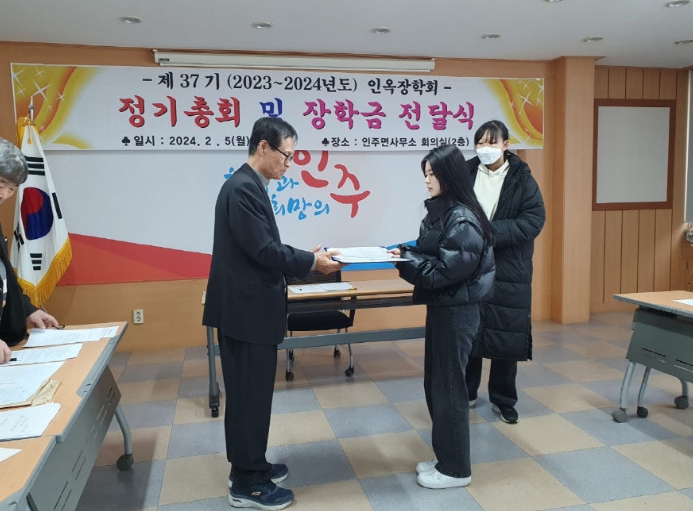 한편, 인옥장학회는 지난달 인주중학교 졸업생 4명에게도 200만 원(각 50만 원)을 지급한 바 있으며, 매년 지역출신 학생들에게 장학금을 지급하고 있다.