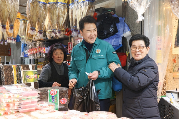 오 구청장은 떡, 과일, 채소 등 다양한 음식을 온누리상품권으로 구매하고 장을 보러 나온 주민들과 덕담과 명절인사를 나눴다. 또 시장 곳곳을 둘러보며 상인들의 애로사항을 경청했다.