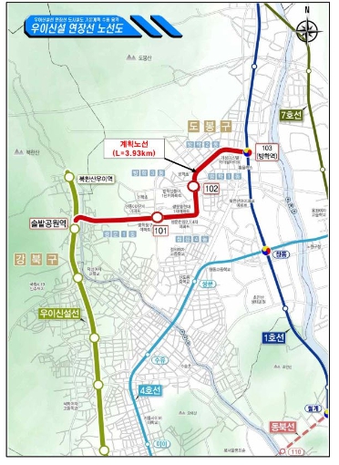 ![]() 우이방학경전철 연장선 노선도 |