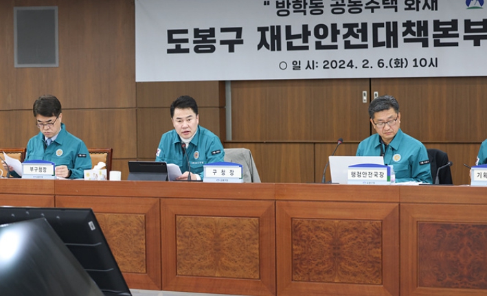 ![]() 도봉구는 지난 6일 공동주택 화재 재난안전대책본부 회의에서 도봉구 아파트 화재에 따른 사망자 유족에게 구호금과 장례비를 각각 1천만 원씩 지급하기로 결정했다(2024. 2. 6. 도봉구청 9층 씨알홀)(사진 가운데 오언석 도봉구청장) |