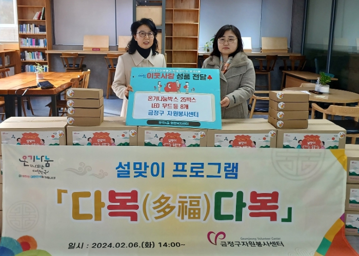 금정구자원봉사센터 곽둘주 사무국장은 “나눔과 봉사로 온기를 전하는 온기 나눔 캠페인에 동참할 수 있어서 기쁘고 따뜻한 온기가 확산하는 설 명절이 되기를 바란다”라며, “앞으로도 지역사회를 위한 나눔 실천을 지속해서 노력하겠다”라고 밝혔다.