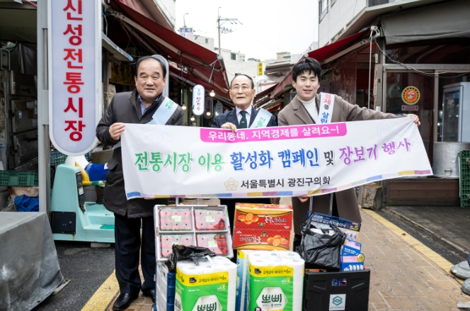 이번 설 명절맞이 장보기에는 가 선거구 의원들이 신성전통시장을, 나 선거구 의원들이 화양‧능동시장을, 다 선거구 의원들이 자양전통시장을, 라 선거구 의원들이 노룬산~영동교 골목시장을 방문하여 미리 준비한 '온누리상품권'으로 신선한 농축수산물과 제수용품을 직접 구입했다. 또한 상인들과 구민들의 다양한 의견을 청취하고 전통시장 이용을 높이기 위한 캠페인을 진행했다.