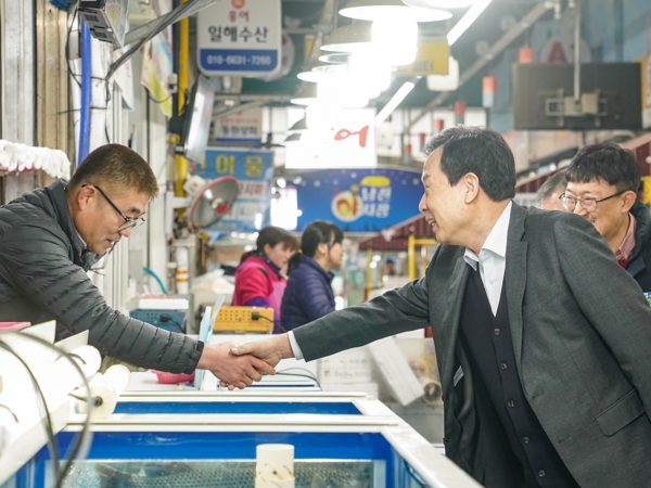 박 시장은 지난 6일 종합수산시장 방문을 시작으로 항동시장, 중앙식료시장, 자유시장, 동부시장, 신중앙시장, 청호시장 등 전통시장을 찾아 상인들을 격려하며 고충을 청취했다.