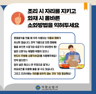 ![]() 거창소방서, 명절 음식 조리 시 식용유 화재에 주의하세요 |