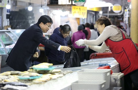 ![]() 최교진 교육감이 세종전통시장을 방문해 필요한 용품을 구매하고 있는 모습 |