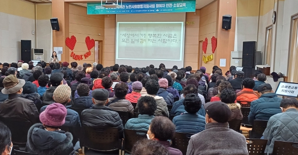 강의는 박은민 동신대학교 상담심리학과 교수를 초청, 건강하고 행복한 노후의 삶 및 안전사고 예방 등에 대해 다루며 어르신들의 큰 호응을 얻었다.