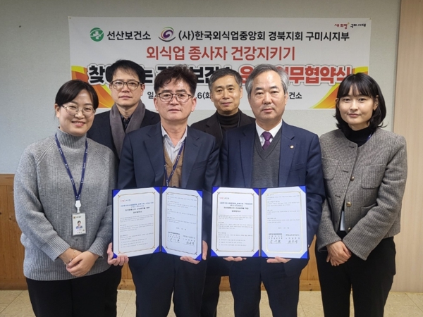 권준경 선산보건소장은 “이번 협약은 민‧관이 협력해 공공보건의료 사각지대를 발굴하고 그간 소외된 외식업 종사자들의 건강을 위해 함께 힘쓰는 데 큰 의미가 있다. 앞으로도 소외받는 주민들을 위한 노력을 지속해서 기울여 건강한 구미가 되도록 노력하겠다”고 했다.
