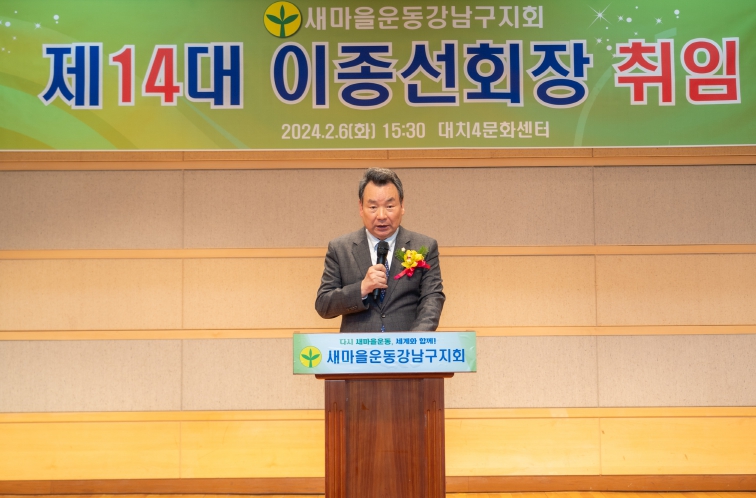![]() 지난 6일 진행된 “새마을운동강남구지회 임원 취임식”에서 김형대 의장이 축사를 하고 있다. |