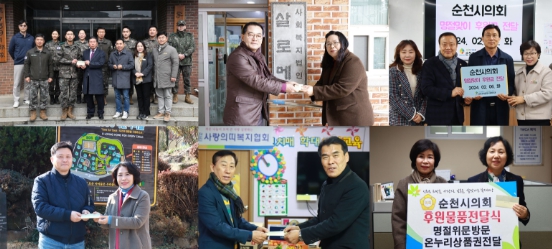 한편, 순천시의회는 더불어 살아가는 사회구현을 위해 매년 설, 추석 명절에 군부대와 사회복지시설 등을 찾아 꾸준히 위문활동을 이어오고 있다.