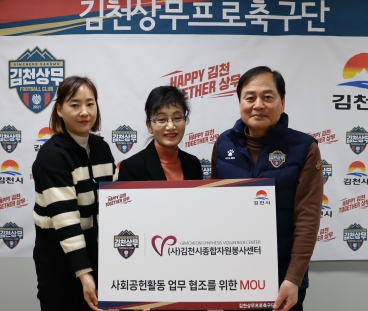 김천상무는 올해 들어 3건의 MOU를 체결한 가운데, 이날 자원봉사센터와 업무 협약을 통해 김천시에서 다양한 사회공헌활동을 전개할 예정이다. 김천상무는 지난해에도 자원봉사센터와 함께 취약 계층을 위해 ‘1,004장 연탄 기부 봉사’를 실시한 바 있다.
