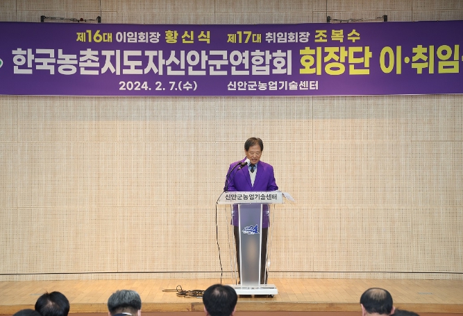 박우량 신안군수는 “농촌지도자회 발전을 위해 애쓴 황신식 전임회장과 군 임원께 감사드리며, 신임회장단에는 격려와 농촌지도자회가 농업인 단체의 맏형으로서 신안군 농업 발전에 힘써 주시길 당부한다”라고 말했다.