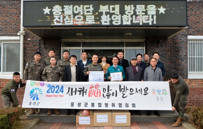 이용록 홍성군수는 “군민의 생명과 안전을 위해 노력하는 장병 여러분 덕분에 우리 모두가 안심하고 즐거운 명절을 보낼 수 있다.”라며“설 명절에도 고향에 방문하지 못하는 장병 여러분에게 조금이나마 위로와 격려가 되길 바란다.”고 전했다.