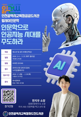 ![]() 인천광역시교육청화도진도서관, '인문학으로 인공지능 시대를 주도하라' 인문학 강좌 운영 |