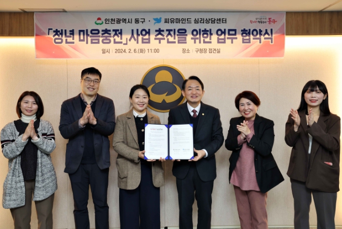이날 협약식은 김찬진 동구청장과 고성인 씨유마인드 심리상담센터장 등이 참석했다. 협약 내용은 ▲청년 마음충전 사업 추진을 위한 적극 지원 ▲사업 목적 달성을 위한 상호 협조 ▲사업 프로그램 개발 및 운영을 위한 노력 등이다.