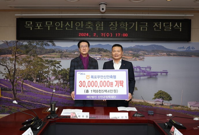 한편, 목포무안신안축협은 1964년 7월 목포지구축산업협동조합으로 시작하여 59년간 축산 농가의 소득안정과 복지증진을 위해 노력하고 있으며, 지난 2016년부터 현재까지 9회에 걸쳐 총 1억 8,504만 원의 장학기금을 신안군장학재단에 기탁하는 등 지역사회의 든든한 후원자 및 버팀목 역할을 이어가고 있다.