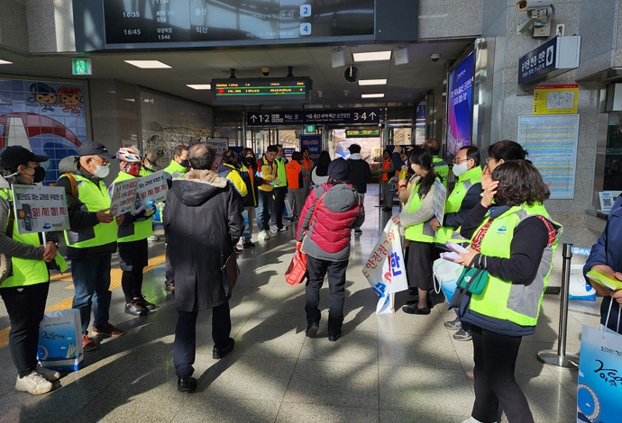 이날 캠페인은 여수시를 비롯해 한국남동발전 여수발전본부, 여수 엑스포역, 의용소방대, 안전보안관 등 5개 기관·단체 50여 명이 참여, 민․관 합동으로 진행됐다.