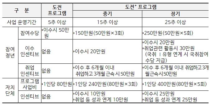 아울러, 프로그램 이수 후 6개월 이내 취업하고 3개월 근속하는 청년에게는 50만원의 취업인센티브가 추가로 지원되며, 도전+ 이수자에 대한 국민취업지원제도 연계를 강화하여 끊김 없는 체계적인 고용서비스를 제공할 예정이다.