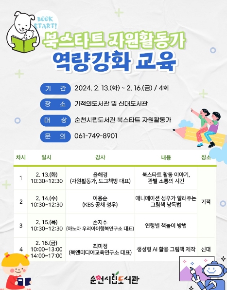 ![]() 순천시립도서관, 북스타트 자원활동가 역량강화 교육 운영 |