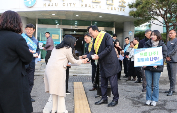 ![]() 나주시가 설 명절을 앞두고 전국 공무원노조 나주시지부와 ‘청렴한 명절 캠페인’을 펼쳤다. |