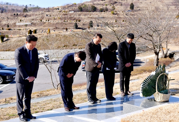 ![]() 정기명 여수시장이 설 명절을 앞두고 9일 오전 시립공원묘지 내 여순사건 희생자 묘역을 참배했다. |