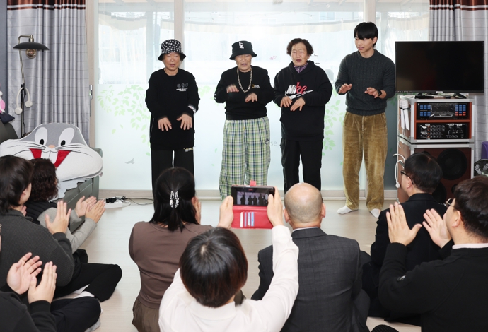 리더인 박점순 할머니와 김태희 할머니도 순연 할머니와 함께“우리가 빠지면 랩이 아니지” 등의 랩 곡을 부르며 덕담을 나누었다.