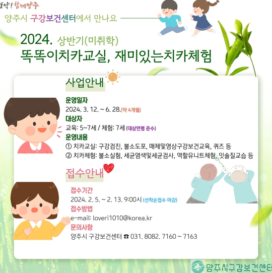 기타 자세한 사항은 양주시 건강증진과 구강보건팀으로 문의하면 된다.