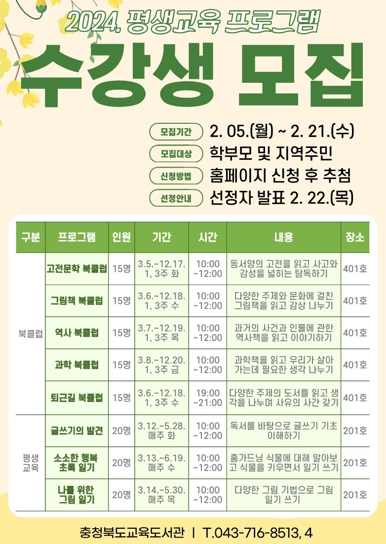 ![]() 교육도서관, 평생교육 프로그램 수강생 모집 |